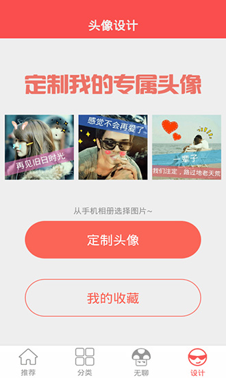 *提供100多个子类,分类清晰明确,快速定位自己的爱好。为你定制专属你的头像,还可以分享给好友。