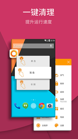 虚拟按键大师app是一个安卓手机仿苹果的软件,在手机上面可以模拟出苹果手机上的各种触摸屏,并且还可以设置各种动作来进行操作,让大家能够更加方便快捷地完成一些事情。