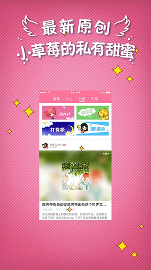 一款专为您精心打造的原创小说应用,汇集了各类耽美小说、言情小说、穿越宫斗小说等热门题材的作品;无论您喜欢哪种类型的耽美的小说,小草莓软件都能为您提供便捷的服务体验。