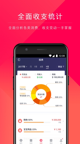 5.【报表清晰】直观展示收支变化,实时了解自己的资产动态。