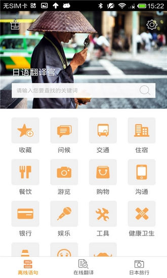 1、在本站下载安装日语翻译官APP后进入首界面如下图所示:
