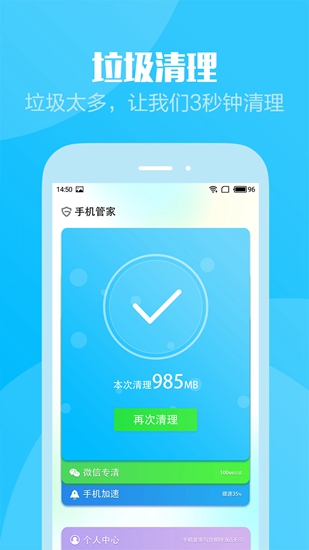 手机管家由开发的一款超级好用的支持对安卓设备进行深层优化的工具软件,通过软件可以实现对系统内核的全面扫描并清理缓存垃圾文件让您的手机运行速度更加稳定不发烫,有需要的用户快来下载试一下吧!