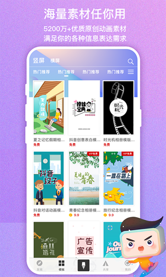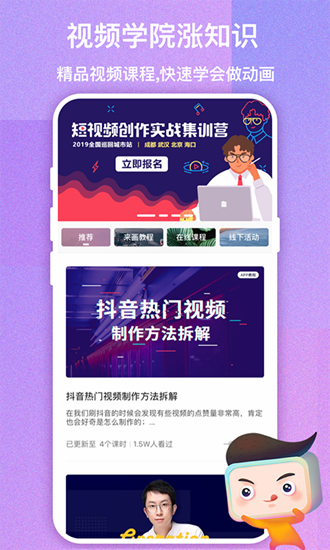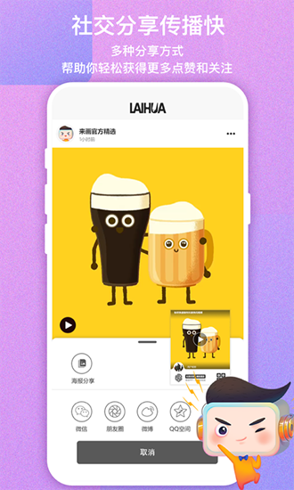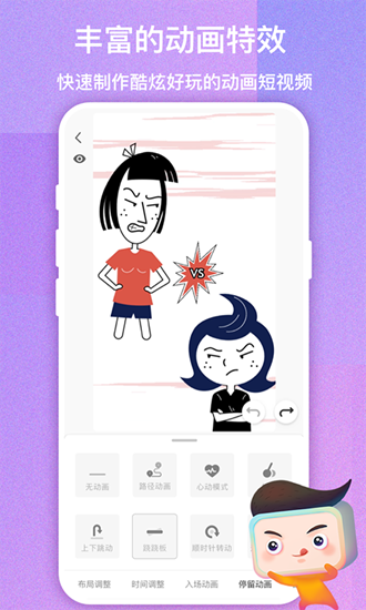 来画短视频制作手机应用是一款可以让你的手机秒变动画,软件拥有丰富的模板素材、海量的特效字幕和各种炫酷动感的转场效果以及各种精美的背景音乐等你选择使用。在这里你可以快速地将自己制作的动画添加到视频中进行分享给你的朋友们!