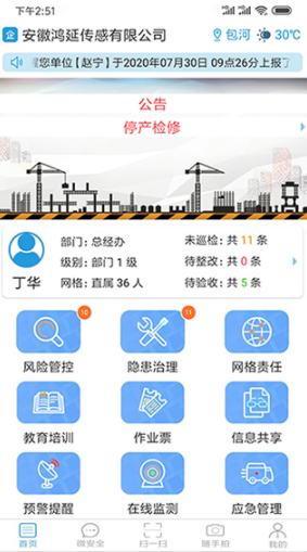 微安全企业安全管理的手机软件,这款微安全企业安全管理的手机软件能够帮助用户快速了解企业安全情况、风险预警以及隐患排查等信息,并且还能实时监控企业安全状态和风险。微安全企业安全管理的手机软件可以有效保护企业的财产安全,需要的用户快来下载吧!