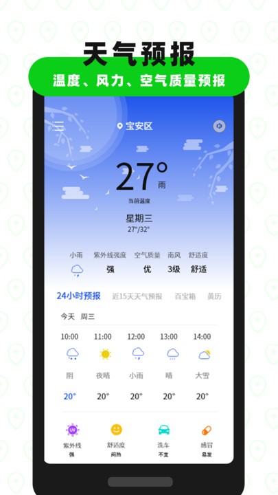 可放大查看全城实况路况,24小时天气状态尽在掌控。