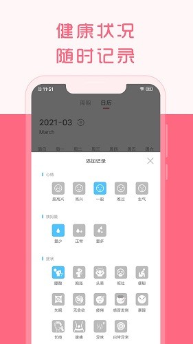 4、全面的数据统计报表:清晰展现每次月经的时间,如按时、每月等周期展示月经数据,助力用户更好地了解自身状况。