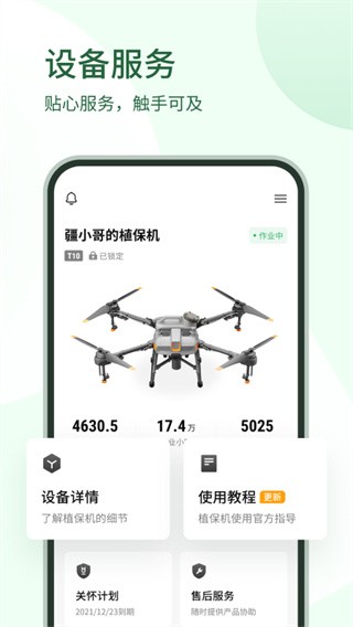 大飞行农服APP采用直观的用户界面设计,让用户轻松完成各项操作;同时具备多种类型的功能模块,如我要报修、我要抢购、我的订单等多项优化调整;同时支持一键分享到朋友圈以及微信好友或社交媒体中获取更多客流量奖励;
