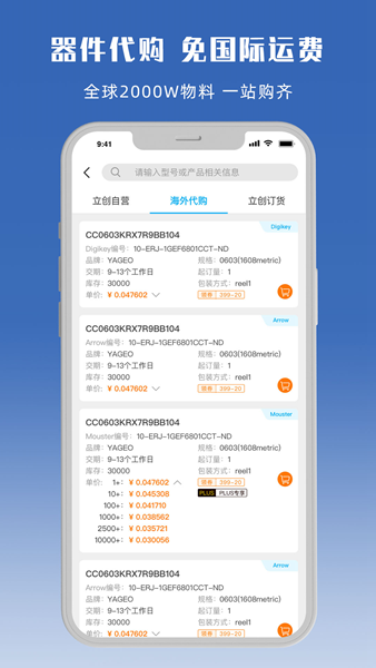 立创商城app是一款手机电子元器件购买软件,在这里有着各种各样的材料商品供用户进行选择购入。还有各种电子产品在线下单订购服务等你来体验!有需要的用户不要错过哟!