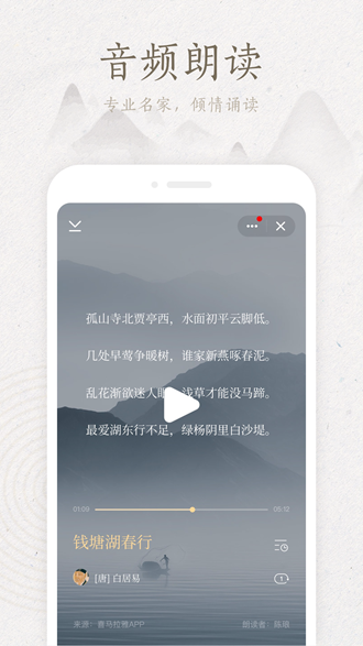 典读为每个有声诗词和名著的手机阅读app是一款非常实用的古文学习软件,这款软件内有大量的古籍可以供用户在线自由浏览。同时这款软件还收录了海量的经典名着、名人故事等资源内容哦!