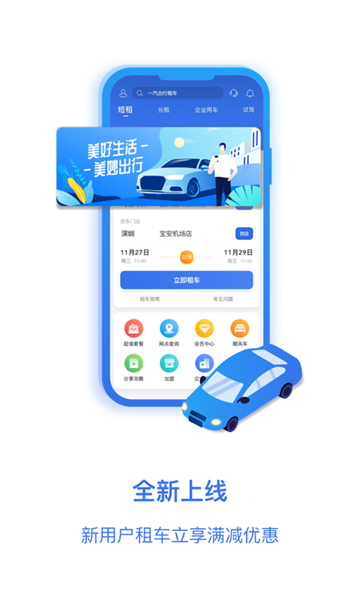 一站式汽车租赁平台,覆盖国内400多个城市及地区,为广大客户提供专业的租车服务,让您随心所欲、随行随借,告别传统租赁模式和时间限制的困扰,轻松下单即享租车优惠,省时省力更省钱,为您打造一整套的汽车租赁新生态,随时了解最新的汽车资讯动态;在线就可以快速购买到自己需要的汽车资源了,让你不用在为寻找车源而烦恼。