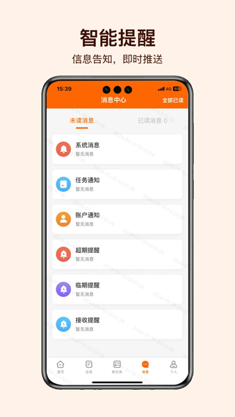 4、还可以查看自己的代办任务提醒消息提示相关数据;