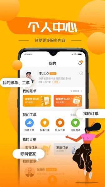 ——用手机就能联系物业客服人员,极大提高了物业人员的办事效率,减轻物业人员的管理负担