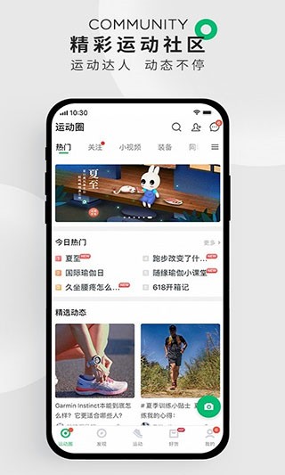 “运动圈”模块,在这里你可以找到自己关注的运动达人发布的动态资讯或者是最新的运动攻略哦。