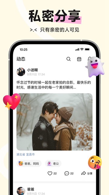 小福家的APP是一个专为家庭成员打造的手机软件,用户可以通过该软件轻松地添加家庭成员并与其他成员共享精彩瞬间、视频或图片,同时还可以设置自动回复功能,确保每位成员都能及时收到消息通知。此外,APP还提供了丰富的社交元素库供您使用,满足用户在不同的场景下的需求。
