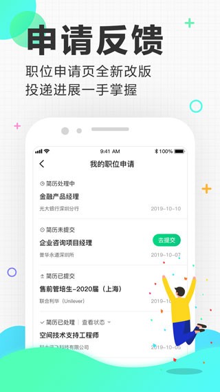【投递反馈】跟踪求职状态,掌握求职进展。接收面试通知;