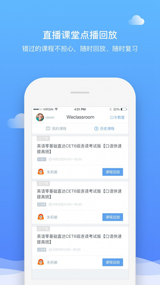 直播云采用多端同步技术,包括PC、手机、平板、、微信等主流终端;同时支持直播回放功能,随时随地想学就学。