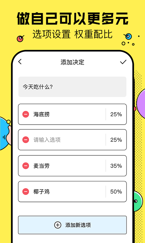 帮助用户解决选择困难的问题,只需输入需要的内容后即可自动做出决定,无需复杂的操作步骤也十分简便易上手;