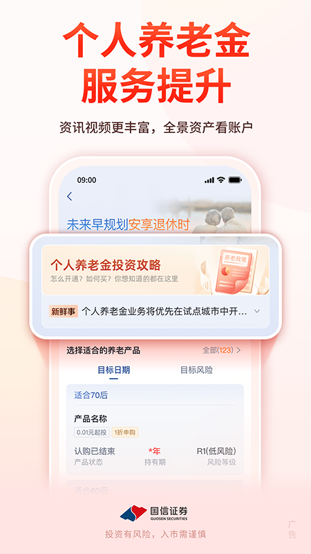 国信证券金太阳手机交易软件是国安期货为客户打造的一款金融理财平台,它拥有丰富的功能和便捷的服务。用户只需简单操作就能轻松开户、在线选股、实时行情查看等服务;并且支持一键登录使用,无需繁琐的手动注册即可完成账户设置与密码解锁流程;此外,该软件提供了多种投资组合选择供您挑选并购买,满足不同投资者需求。