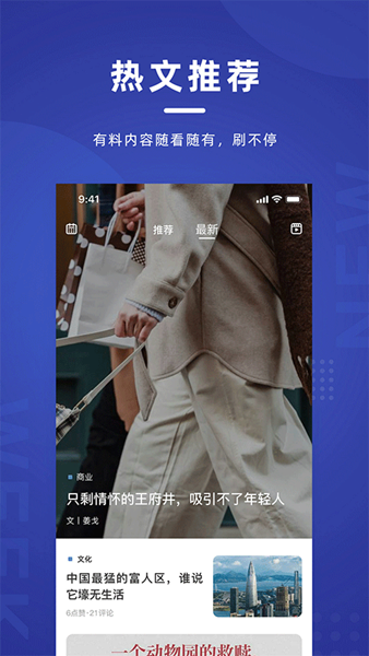 1、【新周刊-新周刊】是国内最大的电子版报刊社,也是国际主流媒体之一。新周刊拥有超过30000篇原创精品内容和海量独家音频,涵盖科技、商业、健康等方面,每天24小时为你带来新鲜资讯。