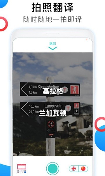 拍照翻译:一键拍照即可获得优质翻译结果。