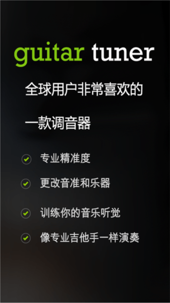 Tuner是专为吉他爱好者打造的乐器调音软件 调音器GuitarTune爱好者学习乐理的软件,专为喜欢玩音乐的朋友打造,内置多种音色可供选择。这款调音器吉他调音器是免费的,提供多种不同音调和音准的选择!使用起来非常简单,只需将手机靠近琴弦即可轻松调整音高。无论您是在初学者还是有经验的高手都能从中找到适合自己的方法来进行学习。
