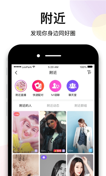 查看附近的好友或周边的用户列表;