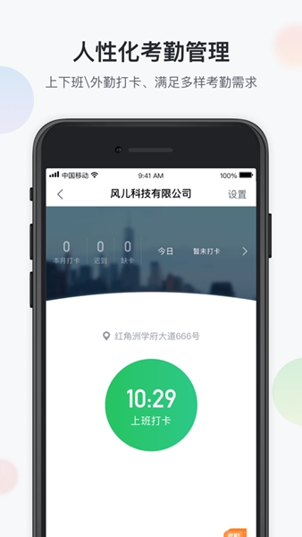 考勤签到:上班打卡自动备份上报出勤数据,还可实时查询历史打卡情况