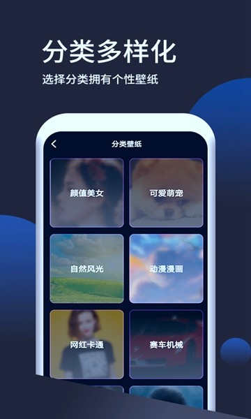 壁纸无忧除了提供静态壁纸外,还支持动态壁纸、3D壁纸、4K壁纸等多项创意功能。