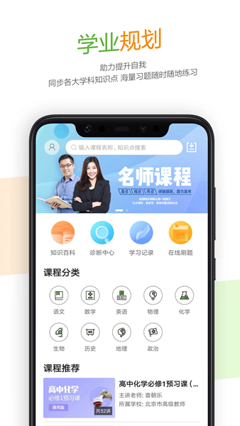 52小学app采用先进的大数据技术,依托人工智能+教学法,基于每个高中的学习阶段特点,52高中app会实时根据每个人的学习情况给出精准的学习报告推送给你参考意见,助力高考升职加薪不是梦