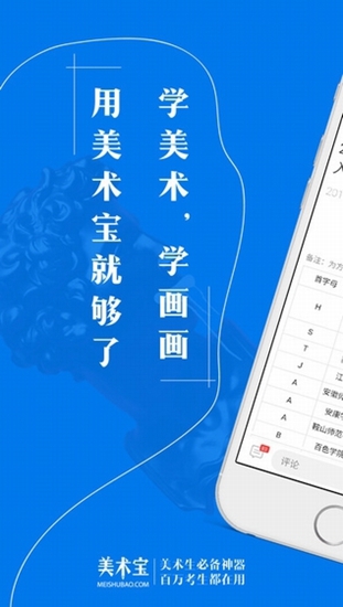 “美术”是专属于学生的线上教育平台,致力于帮助广大考生、家长和老师通过互联网快速掌握美术相关信息及专业知识与技巧,同时还拥有专业的教师团队,一对一指导辅导等功能;