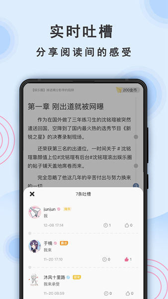 及时发布最新的章节评论、点赞功能及收藏夹分享自己喜爱的作品并与其他读者进行讨论和交流;