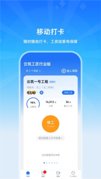 云筑工匠行业版APP采用实名制验证系统,确保项目人员的身份真实性和信任度。