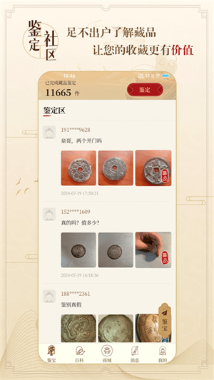 它不仅可以帮助用户在手机上随时随地了解收藏品的价格走势,还能与其他用户分享心得交流观点。此外,听流星APP还提供了专业的鉴定功能,让用户能够更好地欣赏古钱的背后故事,从而避免盲目购买,提高交易效率。无论你是想要寻找古代文物,还是现代文化作品,听器鉴宝APP都能满足你的需求。