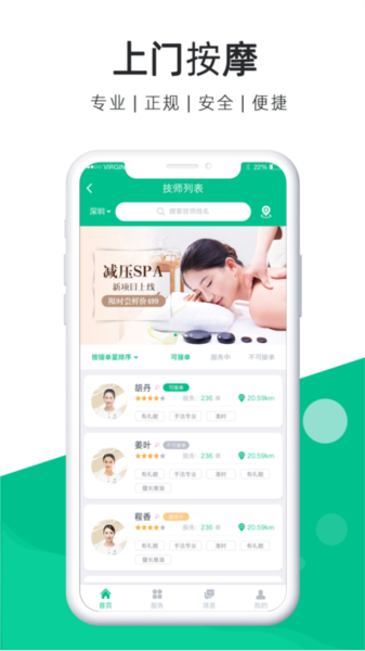 e动推拿app是款专为用户提供便捷的上门服务软件,通过这款app就可以进行线上预约下单、线下体验等操作了,非常方便快捷,并且价格优惠,让你享受优质的服务。感兴趣的小伙伴快来西西下载吧!