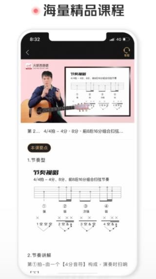 火听翻谱器app是一个专业的乐器练习软件。它提供了多种乐理教学和曲库,包括吉他、尤克里里的各种乐理知识点以及各种音乐作品的演奏方法等。这些资源不仅丰富多样,而且支持自定义设置选项来满足不同用户的需求。