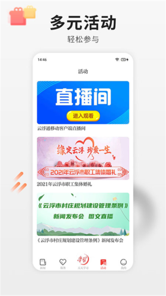 2、聚合超多优质原创内容,包括图文、音频、直播、电视等形式,全方位展现云浮风采。