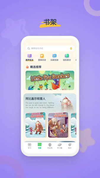“优选全球顶级外教”,由美国知名学校和清华大学出版社联合推出。为3岁以下孩子的家长及儿童提供纯正美式发音、纯北美的原版英语配音绘本与视频动画内容。