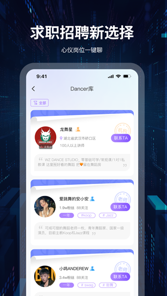 舞蹈爱好者聚集地,发布动态互动交流;