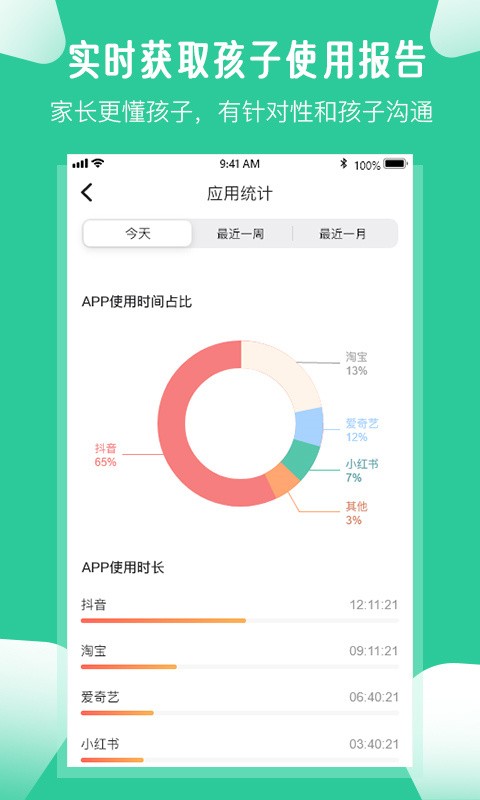 2、实时了解孩子的使用记录,方便进行合理安排。