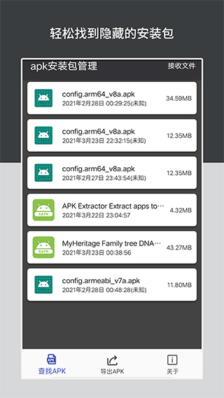 apk安装包管理软件是款很不错的apk文件的扫描工具,快速将apk和ax格式中的apk数据进行提取并保存。使用简单方便且功能强大,适合不同设备型号的用户下载!