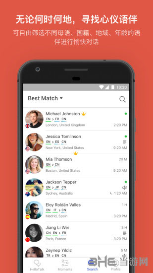app是一款英语学习交流软件 HelloTalk交友软件是一款英语学习交流应用,主要针对于中英文的语言教学进行打造。通过Hellotalk可以随时与其他学习者沟通、讨论并获取反馈信息。这款应用提供多种功能和工具来帮助用户提高学习效率。无论你是初学者还是有经验的学习者,都能在这里找到适合自己的资源和服务!