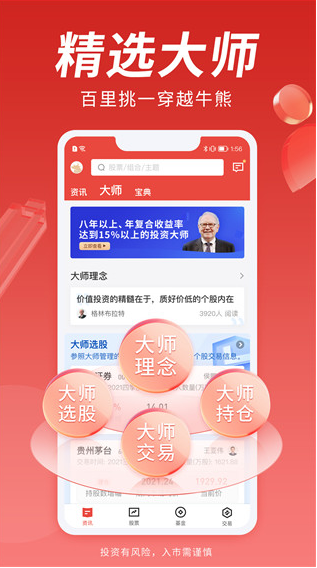 投资大师app是一款专业的理财服务平台,这里有着最全面的资讯和交易功能可以进行选择使用!各种各样的证券产品在这里都可以自由的选择购买。并且还有超多的投资工具为你提供哦!喜欢的朋友赶快来下载体验吧