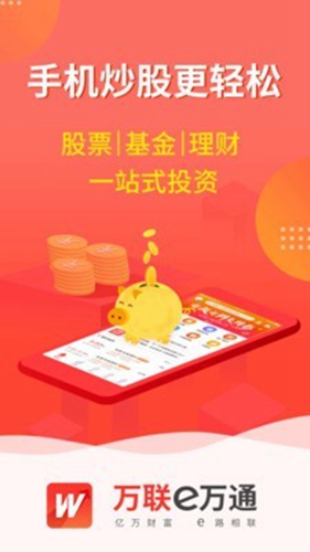 万联e宝通app是一款专业优质的金融理财平台,由中国证券协会(股票代码:D)、华信证券有限公司倾力打造而成。该软件集交易、行情、资讯于一身,为用户提供了海量的基金产品供大家选择购买使用,同时还支持港美美股市场实时监控与投资数据分析功能!并且通过它可以实现极速开户操作和快速下单流程查询等多种服务特色内容以及便捷的投资工具帮助你轻松炒股赚钱,让你在股市中获得最大的盈利空间!除此之外,这款万商财富APP不仅是专属于你的理财商城购物神器,而且其商品类型也十分丰富,涵盖了A/B2C/融资融券、国债逆回购等多种类别,能够满足广大投资者的需求,有需要的用户快来下载吧!
