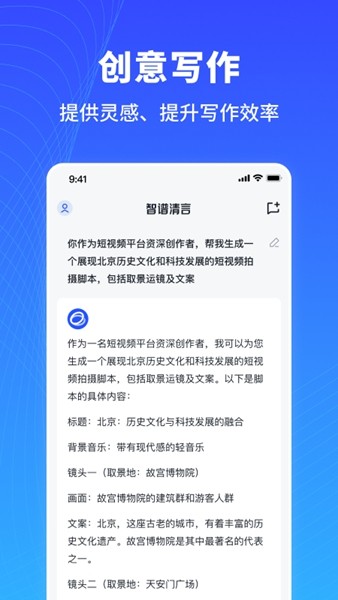 智谱清言为华章智能对话APP是一款专为AI智能聊天打造的智能助手,软件里拥有非常多的实用功能。你可以使用这款AI工具来解决你的生活问题,还可以与ai进行互动交流沟通,有兴趣的小伙伴快来下载吧!