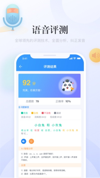 AI跟读纠错:通过AI评估个人发音准确性,及时调整学习策略,增强学习效果。