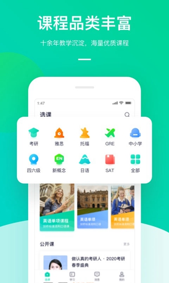 新东方在线是新概念教育集团打造的在线教育服务平台app是一款专为学生提供便捷学习服务的软件,在这里汇集了海量的课程内容可以选择观看了解和使用。能够满足广大学生们不同的需求哦!需要的用户欢迎来绿色资源网下载体验吧!