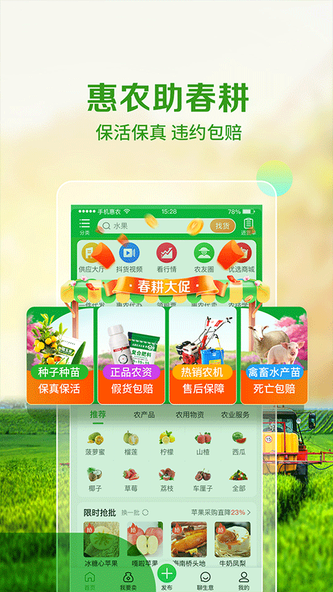 3、【惠农网】惠农网以“服务大众”为使命,整合本地及全球各区域优质商家资源,为消费者提供高性价比的农资采购一站式解决方案。惠农网已累计服务百万中小微企业的上亿用户。