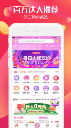 1、【京东、拼多多商城返现金券】京东天猫优惠券:每天10分钟,双十一,双12,乐享不停;更有首创“0门槛”创业模式,零投资,零风险,零囤货,零发货。