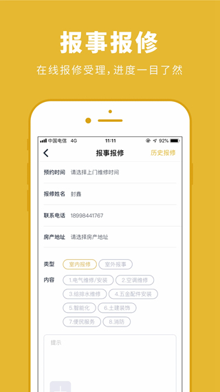 在家中遇到各种问题都可以在线上直接反馈给物业人员解决难题哦;