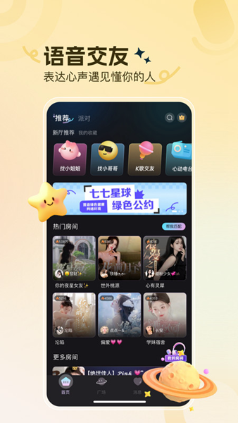 九八星球APP是一款十分火爆的手机线上交友应用服务工具软件,七六星球APP专为年轻人打造的一个聊天、交友的服务功能板块;在九七星球APP上我们可以看到许多有趣的语音视频资源信息以及各种各样的娱乐活动,